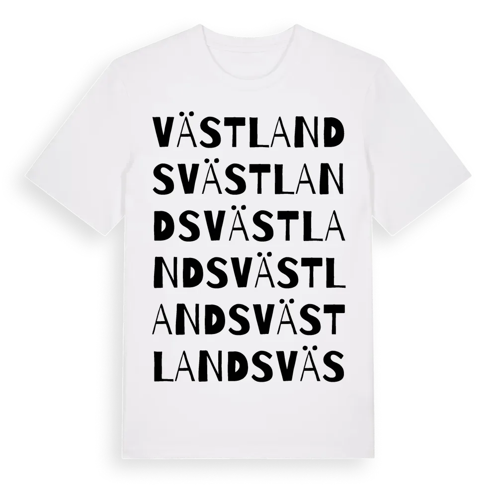 Västlands ordlek t-shirt är inspirerad av Västlands i Gotlands län, Sverige. Tröjan är designad för dig som har en speciell koppling till platsen – oavsett om du bor här, har rötterna här eller bara älskar Västlands.