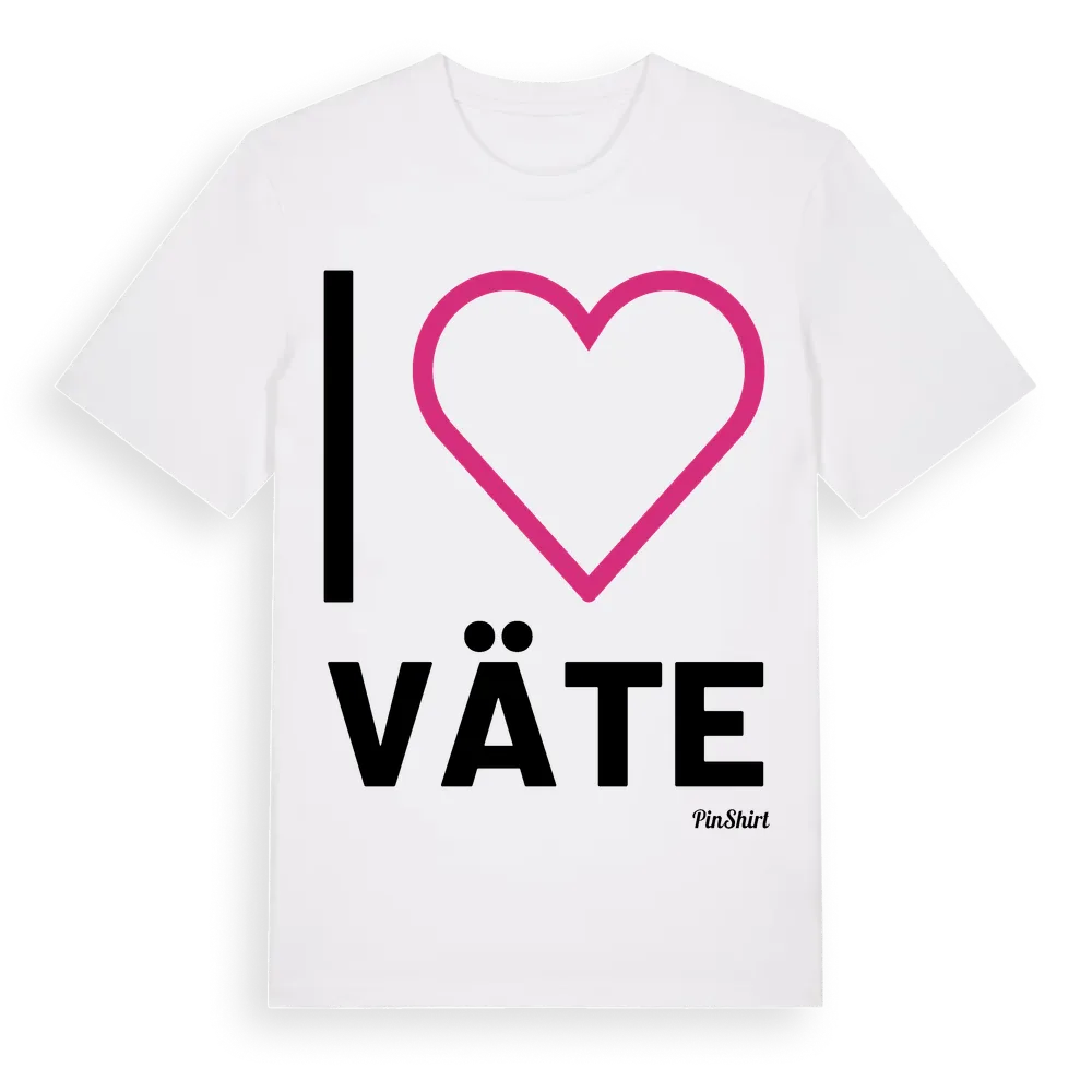 Det klassiska "I ❤ Väte"-motivet i stort format som täcker hela bröstet. För dig som vill visa kärleken till Väte på riktigt. Premium bomull, unisex – från byn Väte i Gotlands län.