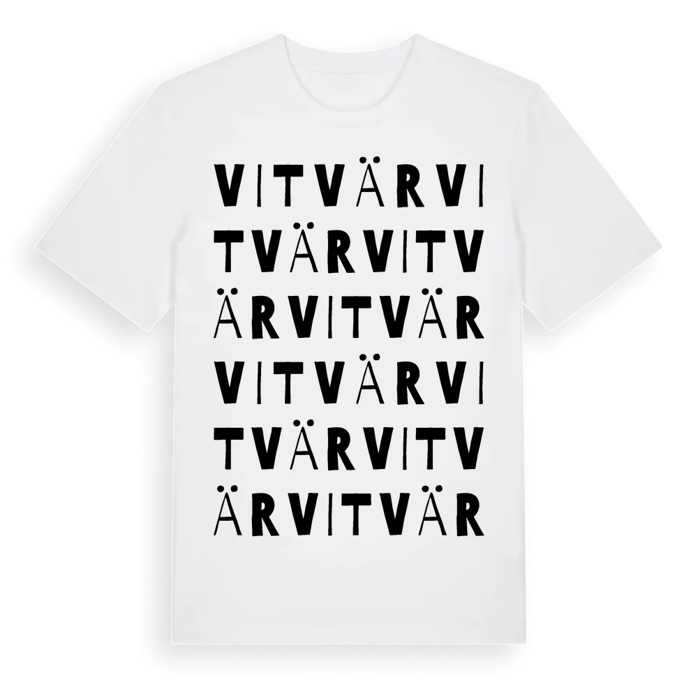 Vitvär ordlek t-shirt är inspirerad av Vitvär i Gotlands län, Sverige. Tröjan är designad för dig som har en speciell koppling till platsen – oavsett om du bor här, har rötterna här eller bara älskar Vitvär.