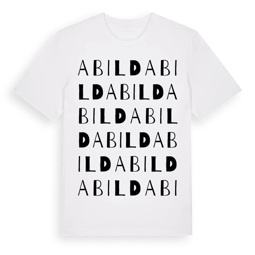 Abild ordlek t-shirt är inspirerad av byn Abild i Hallands län, Sverige. Tröjan är designad för dig som har en speciell koppling till platsen – oavsett om du bor här, har rötterna här eller bara älskar Abild.