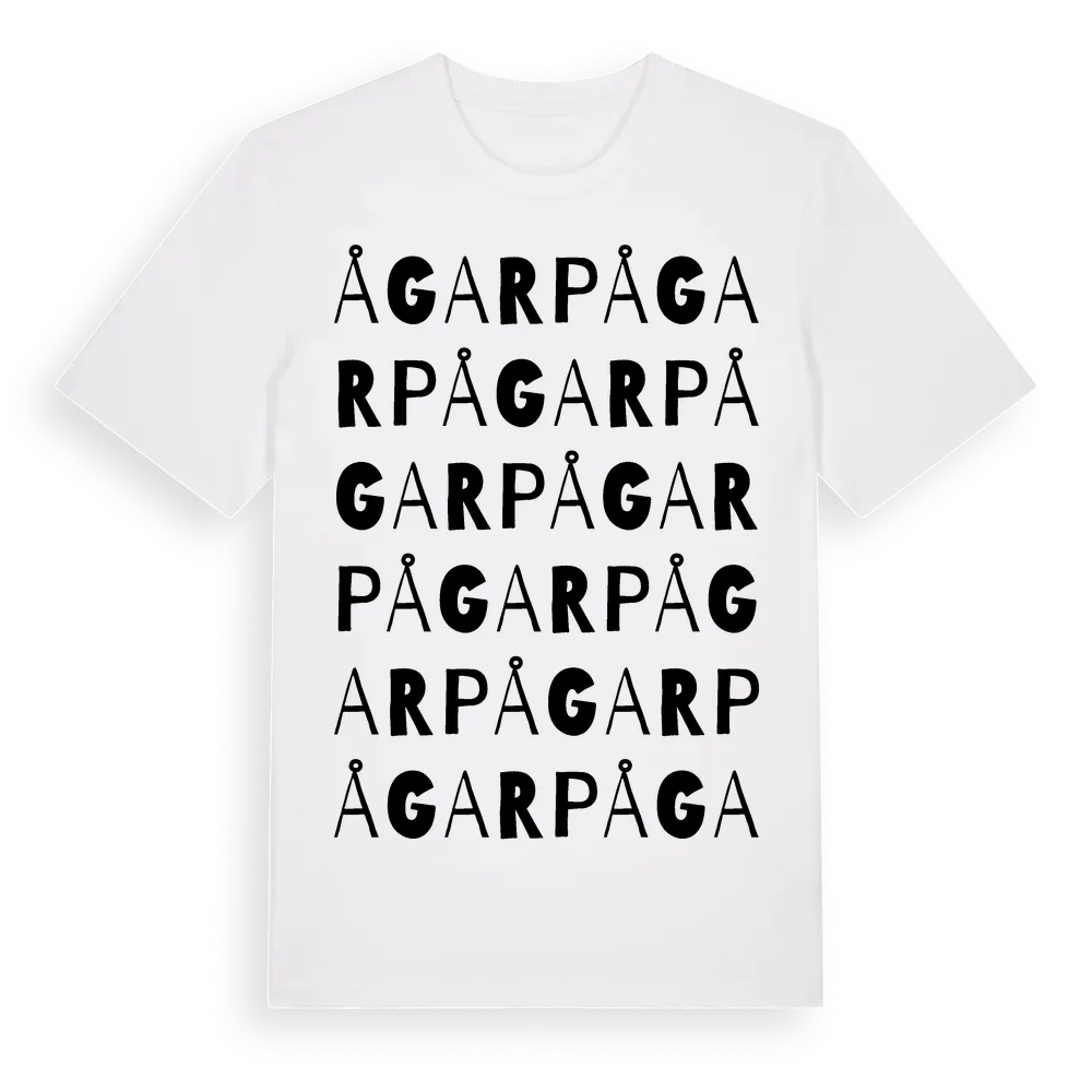 Ågarp ordlek t-shirt är inspirerad av Ågarp i Hallands län, Sverige. Tröjan är designad för dig som har en speciell koppling till platsen – oavsett om du bor här, har rötterna här eller bara älskar Ågarp.