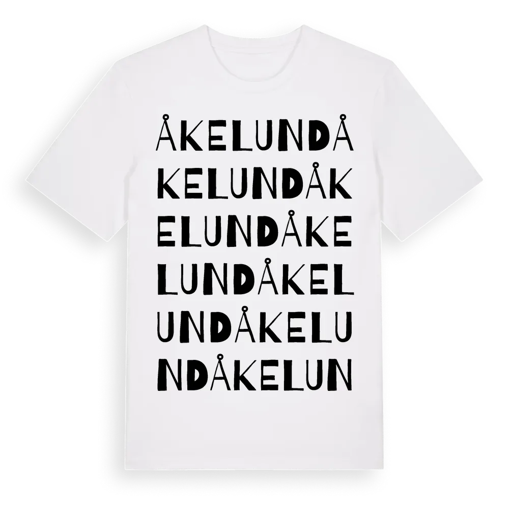 Åkelund ordlek t-shirt är inspirerad av Åkelund i Hallands län, Sverige. Tröjan är designad för dig som har en speciell koppling till platsen – oavsett om du bor här, har rötterna här eller bara älskar Åkelund.