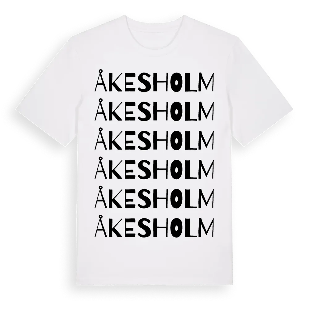 Åkesholm ordlek t-shirt är inspirerad av Åkesholm i Hallands län, Sverige. Tröjan är designad för dig som har en speciell koppling till platsen – oavsett om du bor här, har rötterna här eller bara älskar Åkesholm.