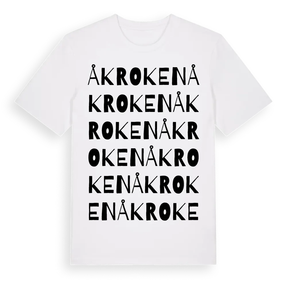 Åkroken ordlek t-shirt är inspirerad av Åkroken i Hallands län, Sverige. Tröjan är designad för dig som har en speciell koppling till platsen – oavsett om du bor här, har rötterna här eller bara älskar Åkroken.