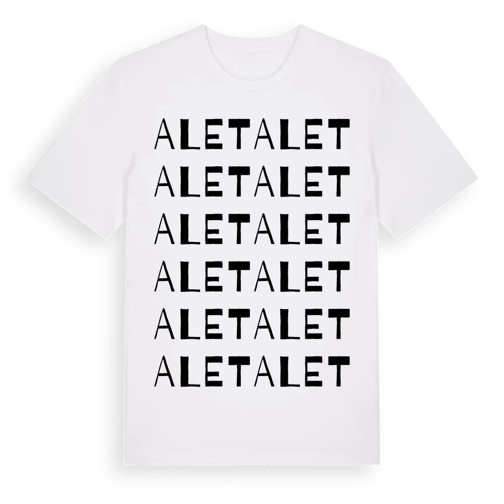 Alet ordlek t-shirt är inspirerad av stadsdelen Alet i Hallands län, Sverige. Tröjan är designad för dig som har en speciell koppling till platsen – oavsett om du bor här, har rötterna här eller bara älskar Alet.