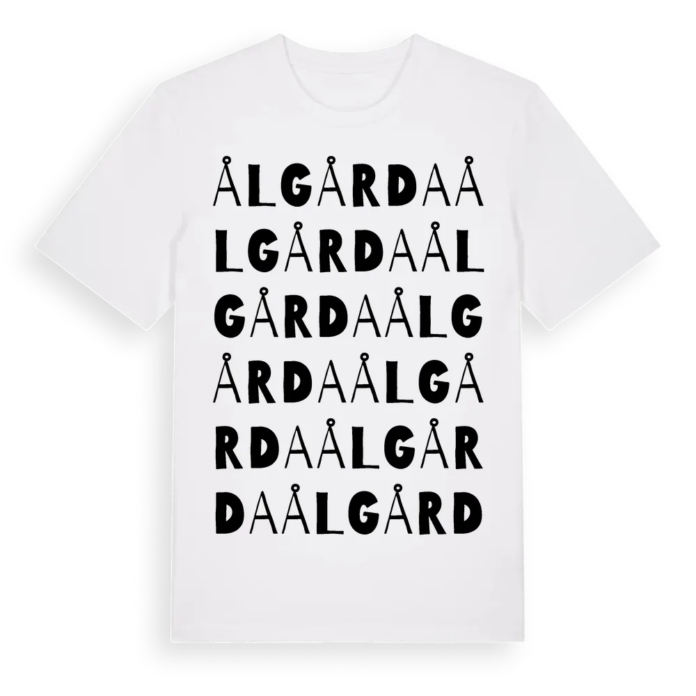 Ålgårda ordlek t-shirt är inspirerad av Ålgårda i Hallands län, Sverige. Tröjan är designad för dig som har en speciell koppling till platsen – oavsett om du bor här, har rötterna här eller bara älskar Ålgårda.