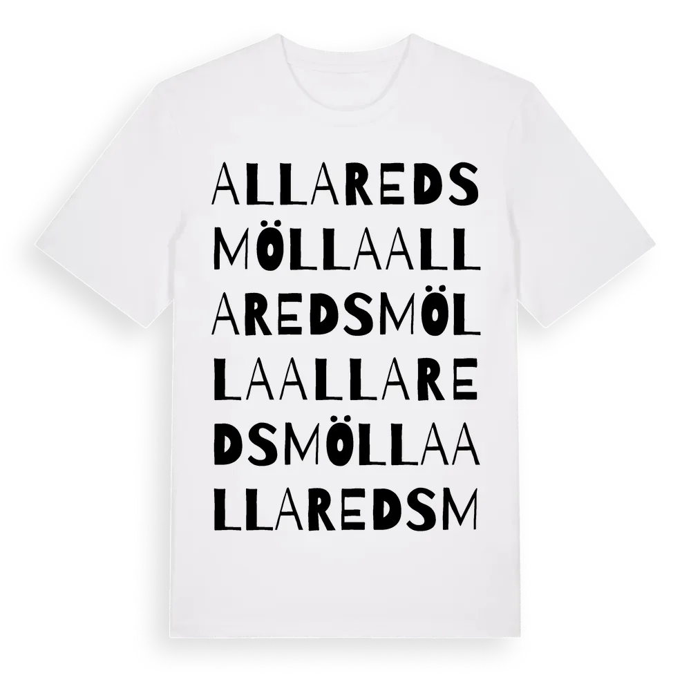 En ordlek byggd på Allareds Möllas namn. Subtilt och klurig – ett motiv som bara de som verkligen känner platsen fullt ut förstår. Premium bomull, unisex – från Allareds Mölla i Hallands län.