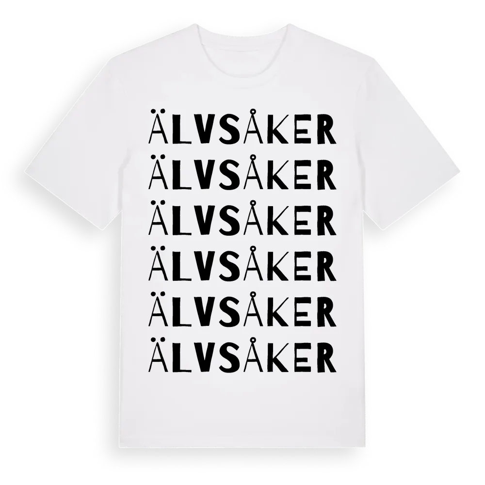 Älvsåker ordlek t-shirt är inspirerad av byn Älvsåker i Hallands län, Sverige. Tröjan är designad för dig som har en speciell koppling till platsen – oavsett om du bor här, har rötterna här eller bara älskar Älvsåker.