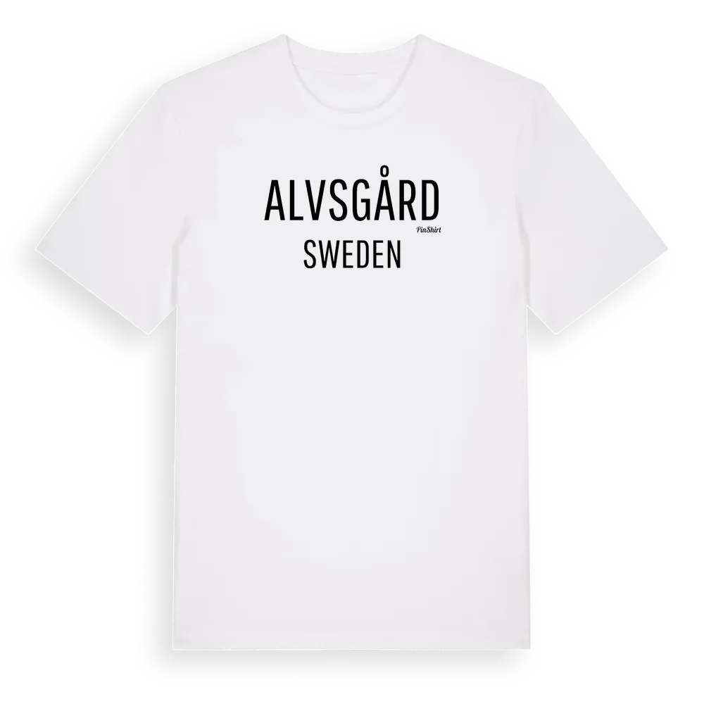 Alvsgård i Sverige t-shirt är inspirerad av Alvsgård i Hallands län, Sverige. Tröjan är designad för dig som har en speciell koppling till platsen – oavsett om du bor här, har rötterna här eller bara älskar Alvsgård.