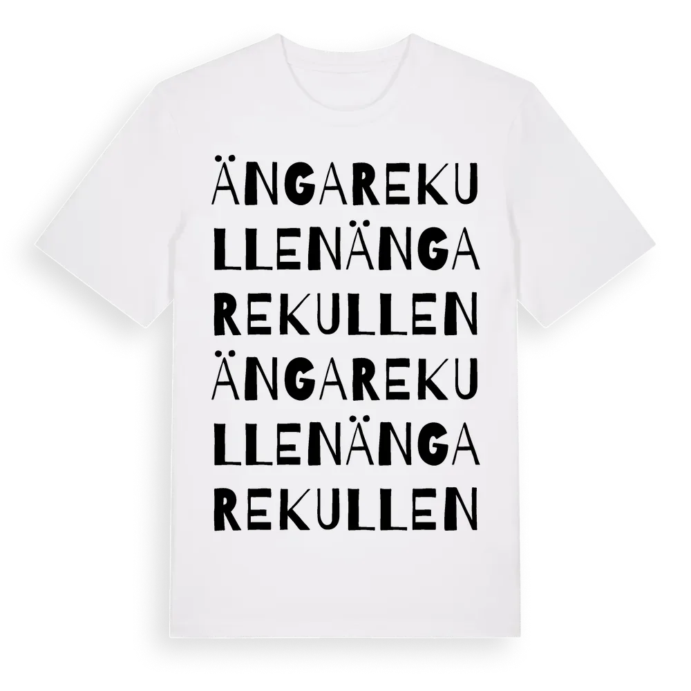En ordlek byggd på Ängarekullens namn. Subtilt och klurig – ett motiv som bara de som verkligen känner platsen fullt ut förstår. Premium bomull, unisex – från Ängarekullen i Hallands län.