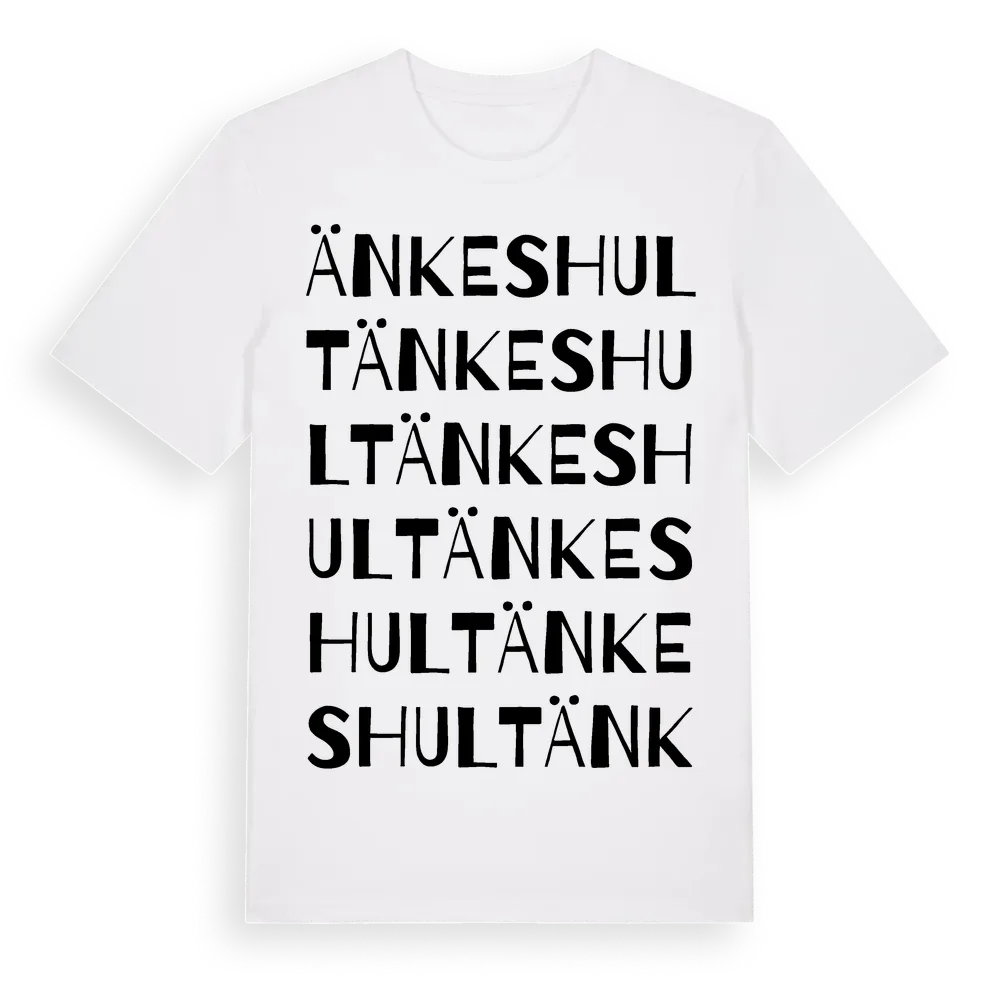 Änkeshult ordlek t-shirt är inspirerad av Änkeshult i Hallands län, Sverige. Tröjan är designad för dig som har en speciell koppling till platsen – oavsett om du bor här, har rötterna här eller bara älskar Änkeshult.