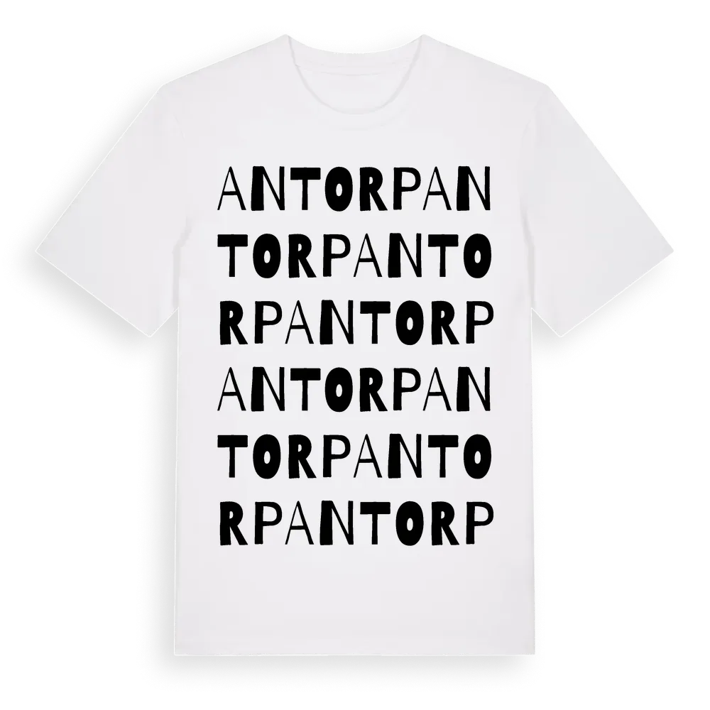 Antorp ordlek t-shirt är inspirerad av byn Antorp i Hallands län, Sverige. Tröjan är designad för dig som har en speciell koppling till platsen – oavsett om du bor här, har rötterna här eller bara älskar Antorp.