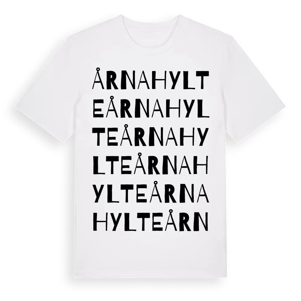 Årnahylte ordlek t-shirt är inspirerad av Årnahylte i Hallands län, Sverige. Tröjan är designad för dig som har en speciell koppling till platsen – oavsett om du bor här, har rötterna här eller bara älskar Årnahylte.