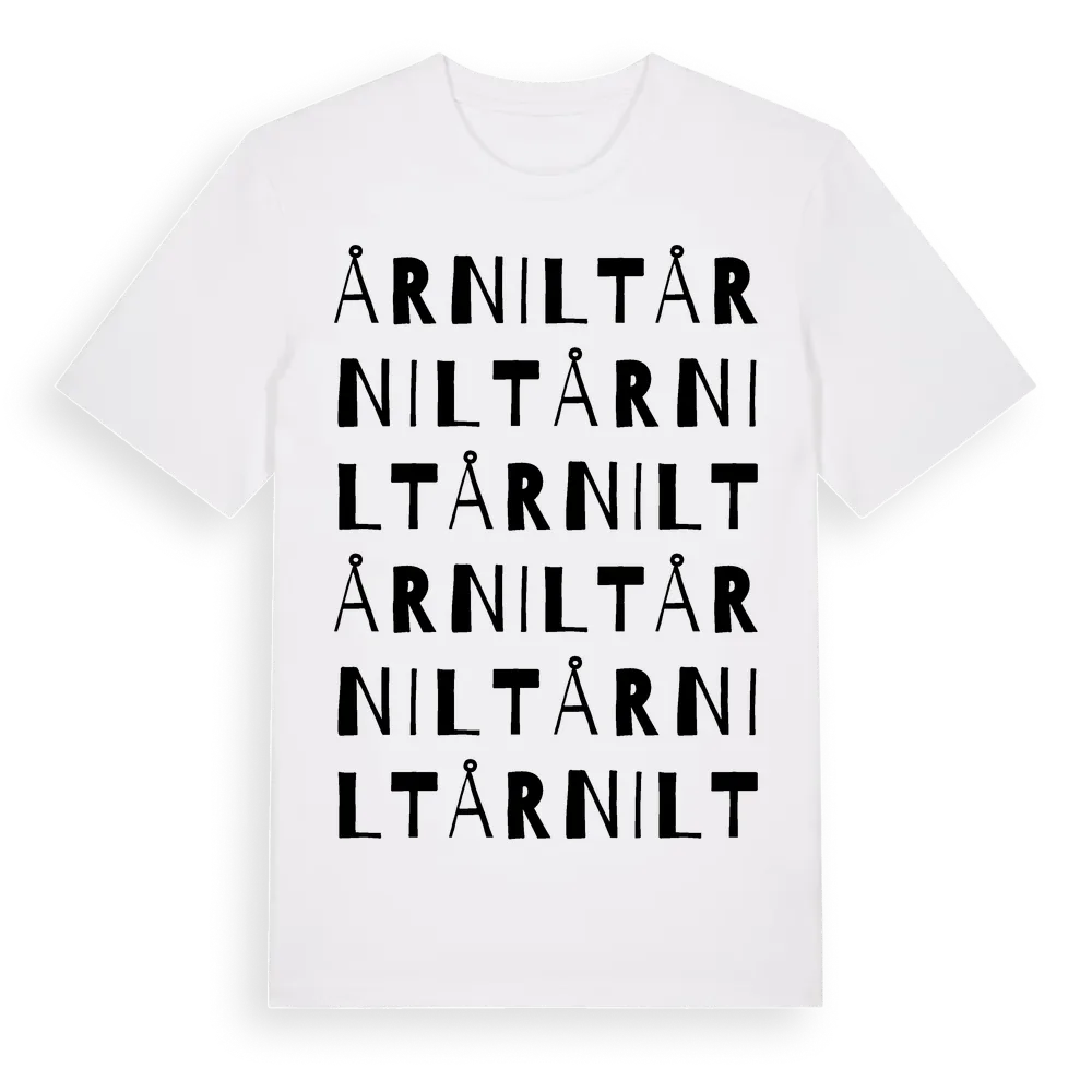 Årnilt ordlek t-shirt är inspirerad av byn Årnilt i Hallands län, Sverige. Tröjan är designad för dig som har en speciell koppling till platsen – oavsett om du bor här, har rötterna här eller bara älskar Årnilt.