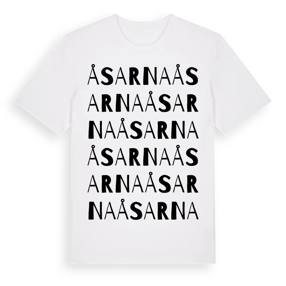 Åsarna ordlek t-shirt är inspirerad av Åsarna i Hallands län, Sverige. Tröjan är designad för dig som har en speciell koppling till platsen – oavsett om du bor här, har rötterna här eller bara älskar Åsarna.
