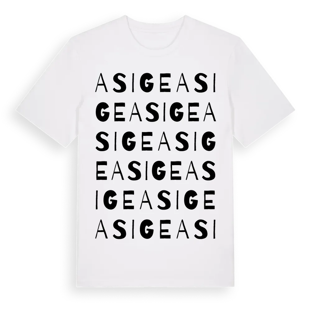Asige ordlek t-shirt är inspirerad av byn Asige i Hallands län, Sverige. Tröjan är designad för dig som har en speciell koppling till platsen – oavsett om du bor här, har rötterna här eller bara älskar Asige.