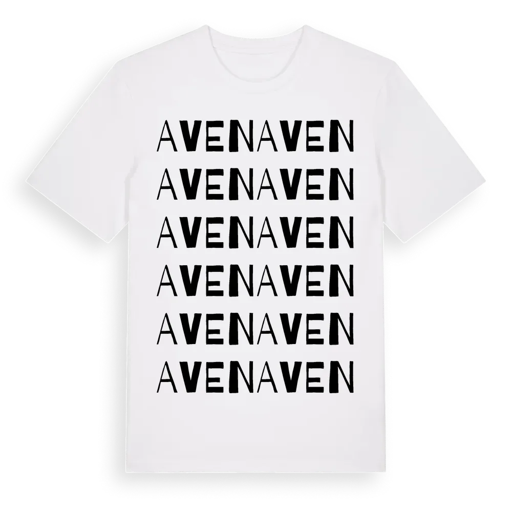 Aven ordlek t-shirt är inspirerad av Aven i Hallands län, Sverige. Tröjan är designad för dig som har en speciell koppling till platsen – oavsett om du bor här, har rötterna här eller bara älskar Aven.