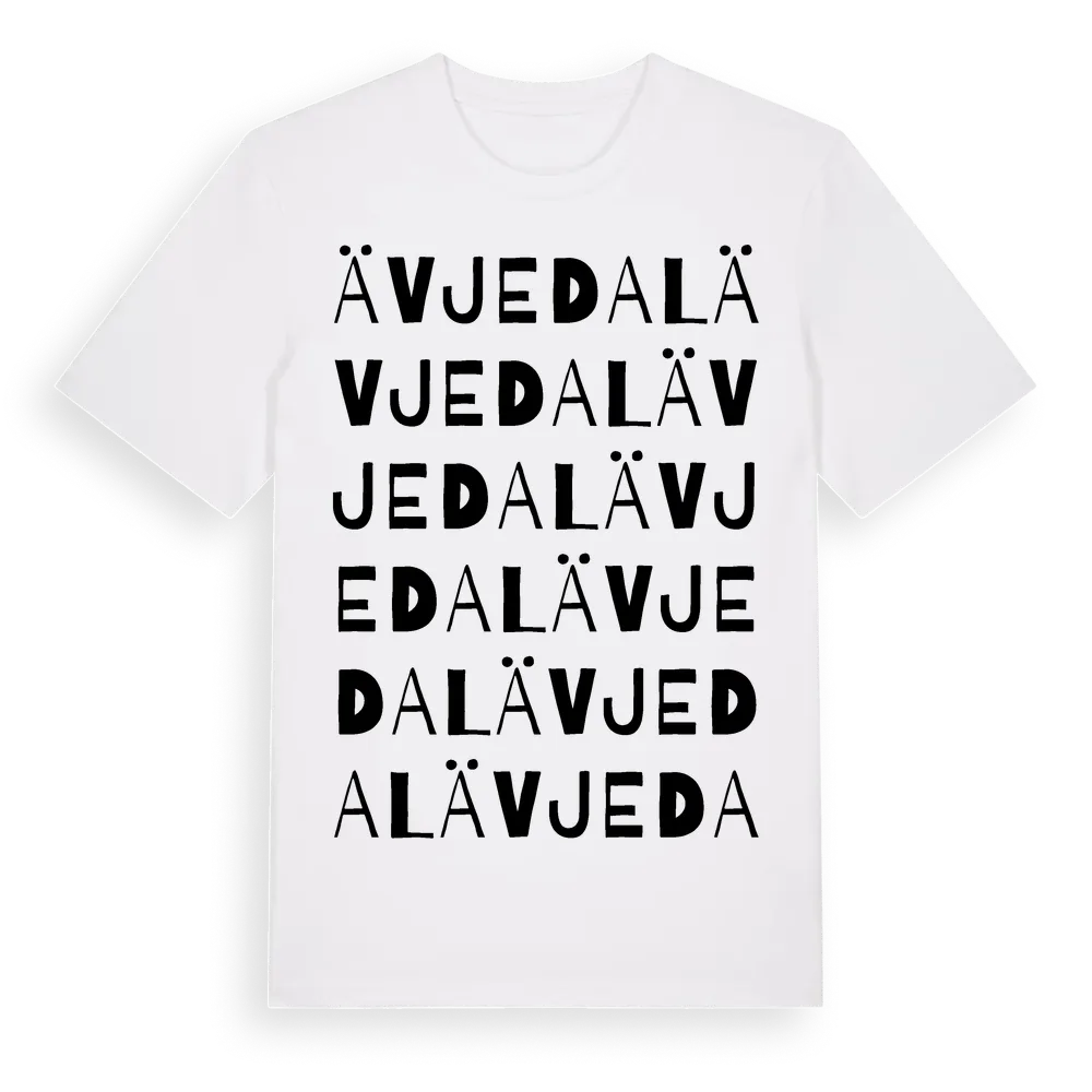 Ävjedal ordlek t-shirt är inspirerad av Ävjedal i Hallands län, Sverige. Tröjan är designad för dig som har en speciell koppling till platsen – oavsett om du bor här, har rötterna här eller bara älskar Ävjedal.