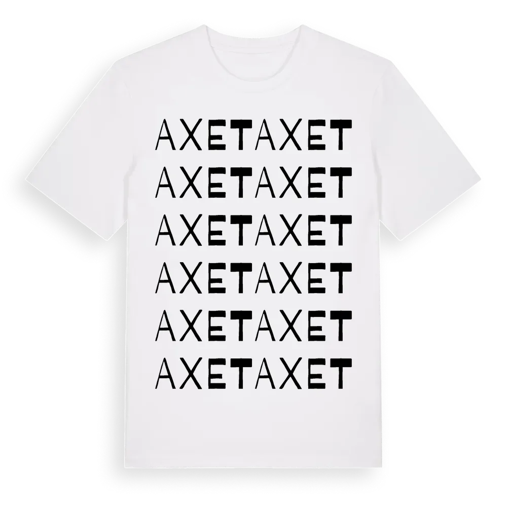 Axet ordlek t-shirt är inspirerad av byn Axet i Hallands län, Sverige. Tröjan är designad för dig som har en speciell koppling till platsen – oavsett om du bor här, har rötterna här eller bara älskar Axet.