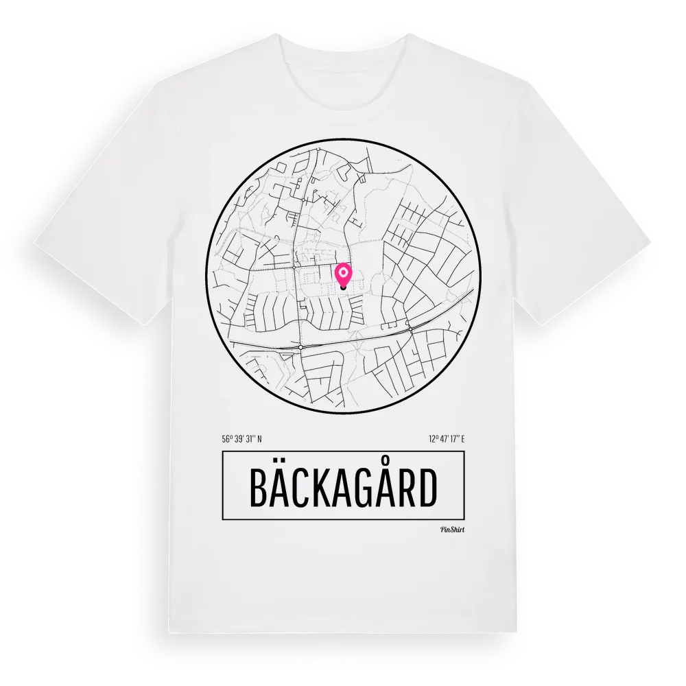 Bäckagård t-shirt är inspirerad av stadsdelen Bäckagård i Hallands län, Sverige. Tröjan är designad för dig som har en speciell koppling till platsen – oavsett om du bor här, har rötterna här eller bara älskar Bäckagård.