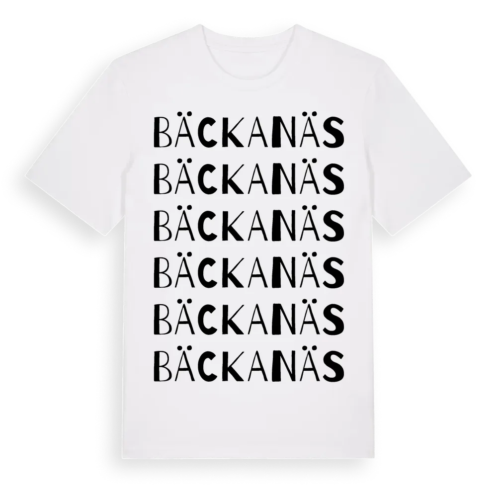 Bäckanäs ordlek t-shirt är inspirerad av Bäckanäs i Hallands län, Sverige. Tröjan är designad för dig som har en speciell koppling till platsen – oavsett om du bor här, har rötterna här eller bara älskar Bäckanäs.