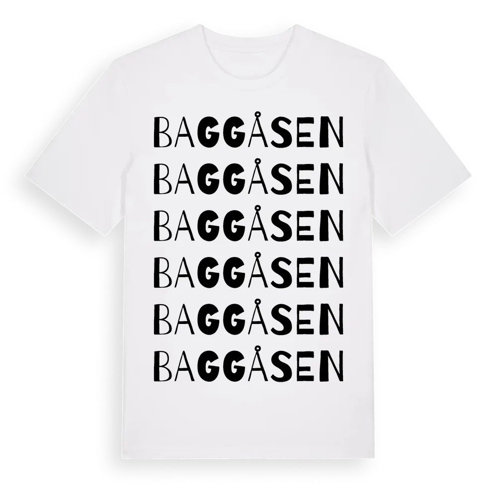 Baggåsen ordlek t-shirt är inspirerad av Baggåsen i Hallands län, Sverige. Tröjan är designad för dig som har en speciell koppling till platsen – oavsett om du bor här, har rötterna här eller bara älskar Baggåsen.