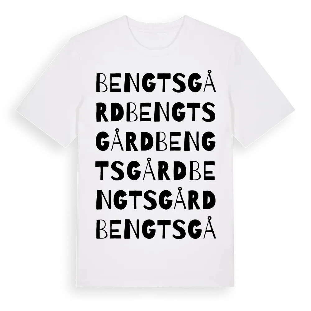 Bengtsgård ordlek t-shirt är inspirerad av Bengtsgård i Hallands län, Sverige. Tröjan är designad för dig som har en speciell koppling till platsen – oavsett om du bor här, har rötterna här eller bara älskar Bengtsgård.