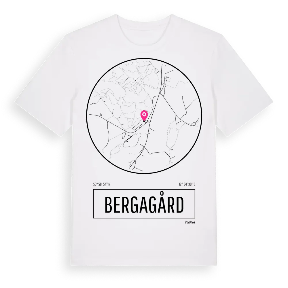 Bergagård t-shirt är inspirerad av byn Bergagård i Hallands län, Sverige. Tröjan är designad för dig som har en speciell koppling till platsen – oavsett om du bor här, har rötterna här eller bara älskar Bergagård.