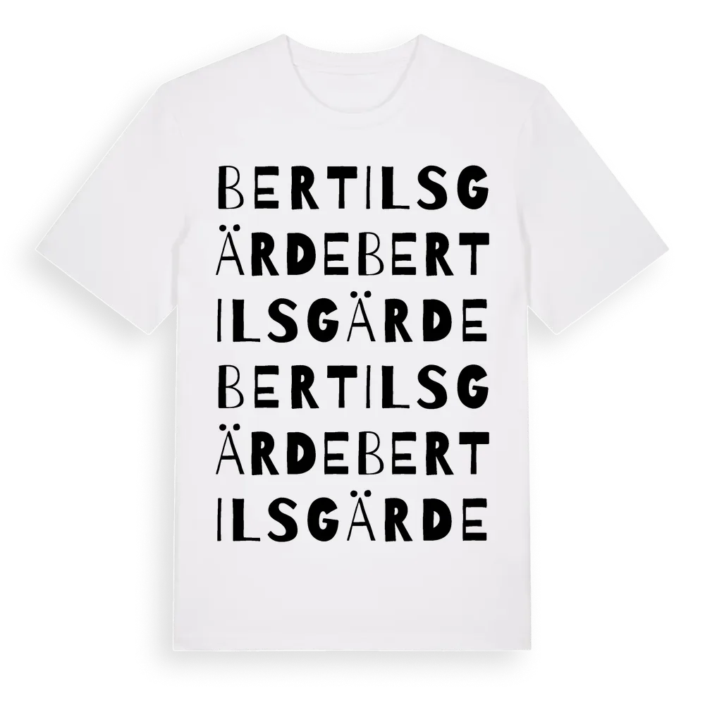 Bertilsgärde ordlek t-shirt är inspirerad av Bertilsgärde i Hallands län, Sverige. Tröjan är designad för dig som har en speciell koppling till platsen – oavsett om du bor här, har rötterna här eller bara älskar Bertilsgärde.