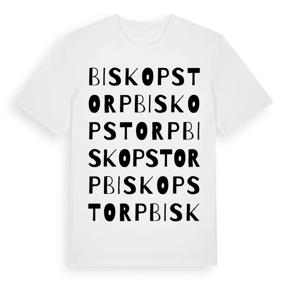 Biskopstorp ordlek t-shirt är inspirerad av Biskopstorp i Hallands län, Sverige. Tröjan är designad för dig som har en speciell koppling till platsen – oavsett om du bor här, har rötterna här eller bara älskar Biskopstorp.