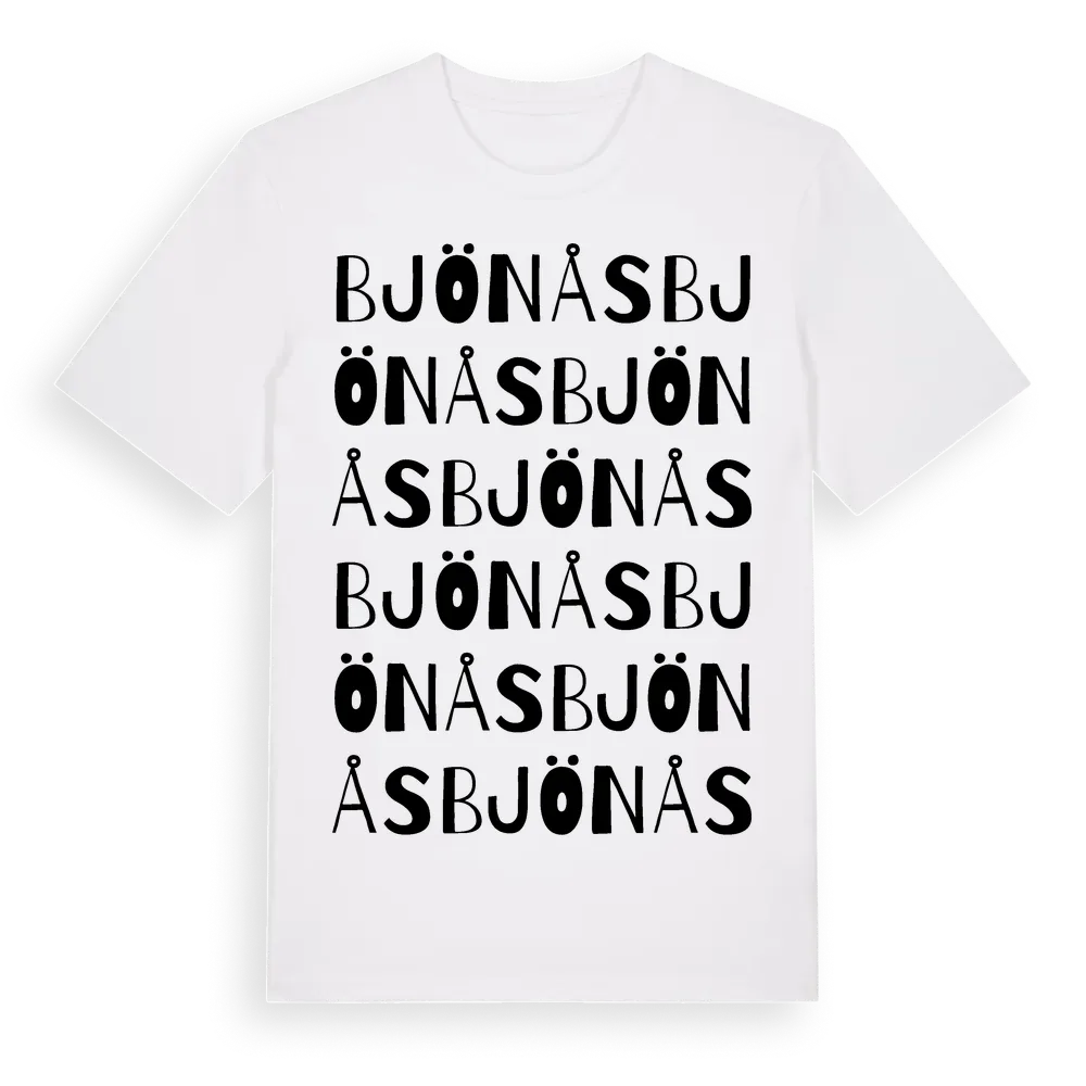 Bjönås ordlek t-shirt är inspirerad av byn Bjönås i Hallands län, Sverige. Tröjan är designad för dig som har en speciell koppling till platsen – oavsett om du bor här, har rötterna här eller bara älskar Bjönås.