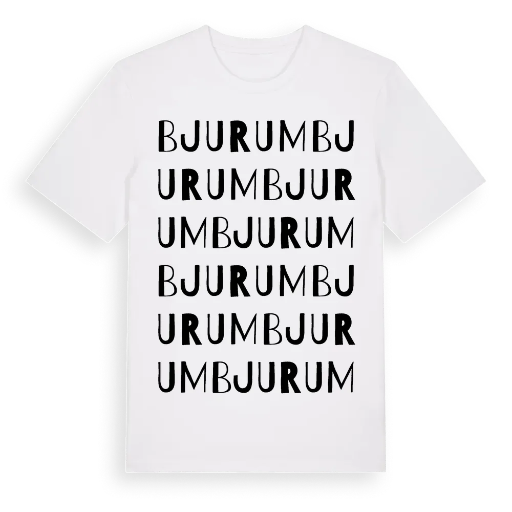 Bjurum ordlek t-shirt är inspirerad av Bjurum i Hallands län, Sverige. Tröjan är designad för dig som har en speciell koppling till platsen – oavsett om du bor här, har rötterna här eller bara älskar Bjurum.
