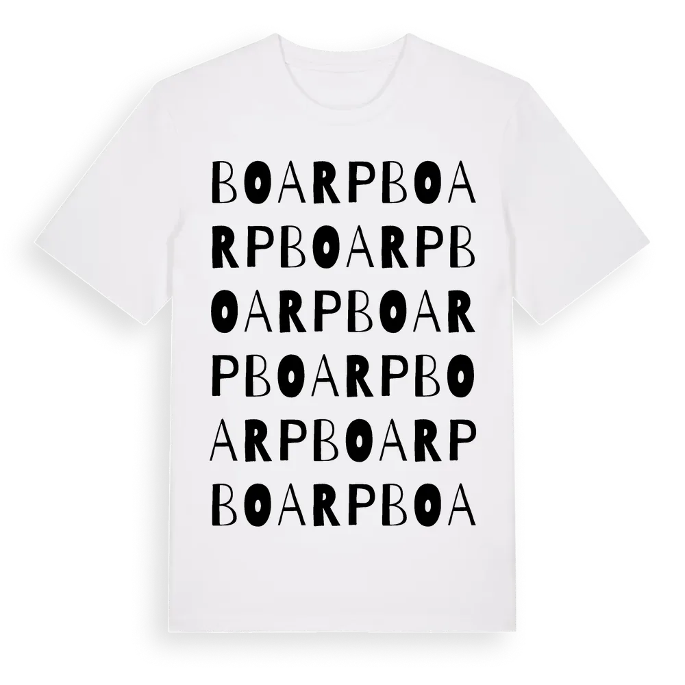 Boarp ordlek t-shirt är inspirerad av Boarp i Hallands län, Sverige. Tröjan är designad för dig som har en speciell koppling till platsen – oavsett om du bor här, har rötterna här eller bara älskar Boarp.
