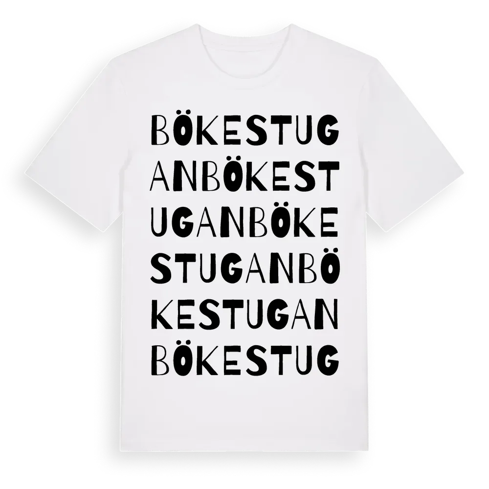 Bökestugan ordlek t-shirt är inspirerad av Bökestugan i Hallands län, Sverige. Tröjan är designad för dig som har en speciell koppling till platsen – oavsett om du bor här, har rötterna här eller bara älskar Bökestugan.