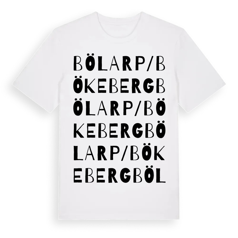 Bölarp/Bökeberg ordlek t-shirt är inspirerad av Bölarp/Bökeberg i Hallands län, Sverige. Tröjan är designad för dig som har en speciell koppling till platsen – oavsett om du bor här, har rötterna här eller bara älskar Bölarp/Bökeberg.