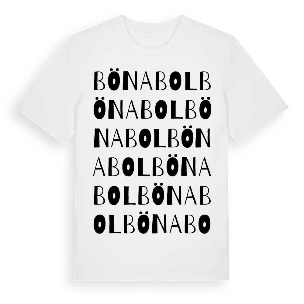 Bönabol ordlek t-shirt är inspirerad av Bönabol i Hallands län, Sverige. Tröjan är designad för dig som har en speciell koppling till platsen – oavsett om du bor här, har rötterna här eller bara älskar Bönabol.