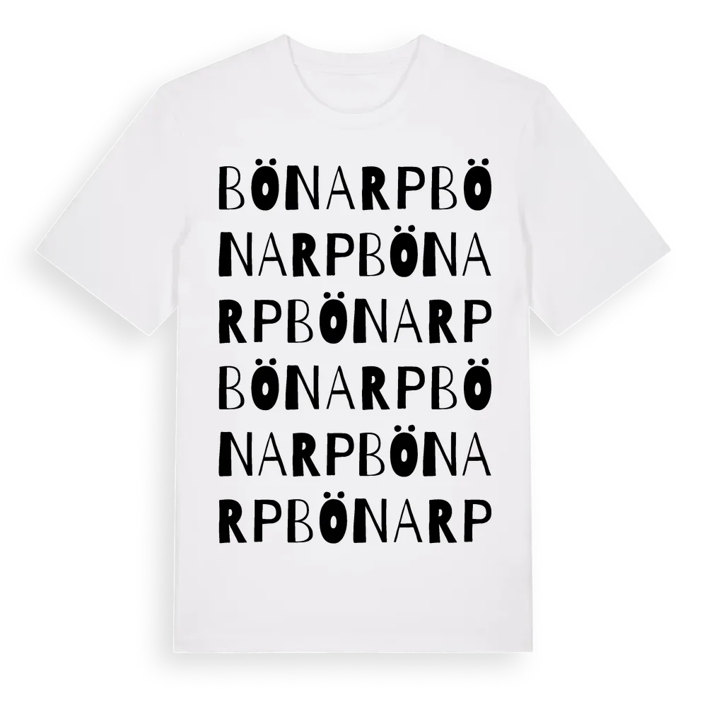 Bönarp ordlek t-shirt är inspirerad av Bönarp i Hallands län, Sverige. Tröjan är designad för dig som har en speciell koppling till platsen – oavsett om du bor här, har rötterna här eller bara älskar Bönarp.