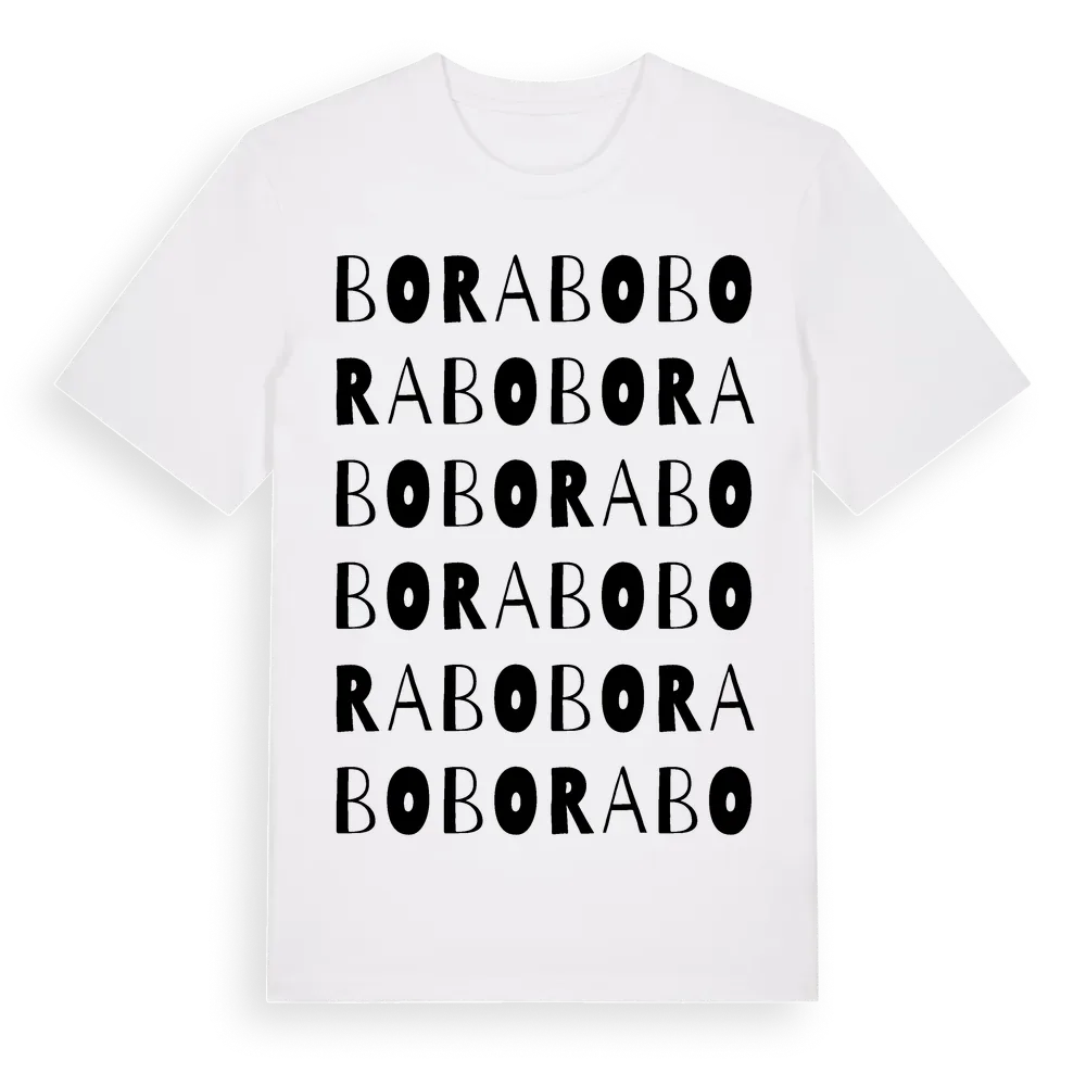 Borabo ordlek t-shirt är inspirerad av Borabo i Hallands län, Sverige. Tröjan är designad för dig som har en speciell koppling till platsen – oavsett om du bor här, har rötterna här eller bara älskar Borabo.