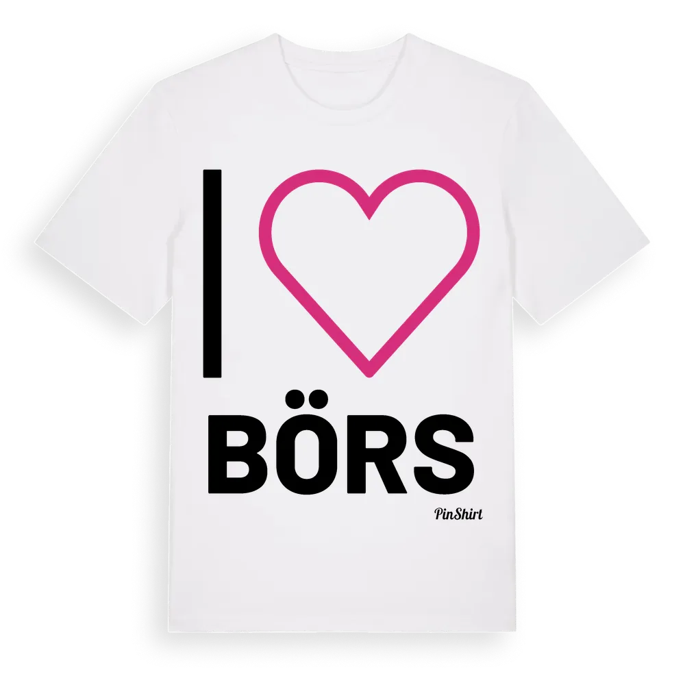 Det klassiska "I ❤ Börs"-motivet i stort format som täcker hela bröstet. För dig som vill visa kärleken till Börs på riktigt. Premium bomull, unisex – från Börs i Hallands län.