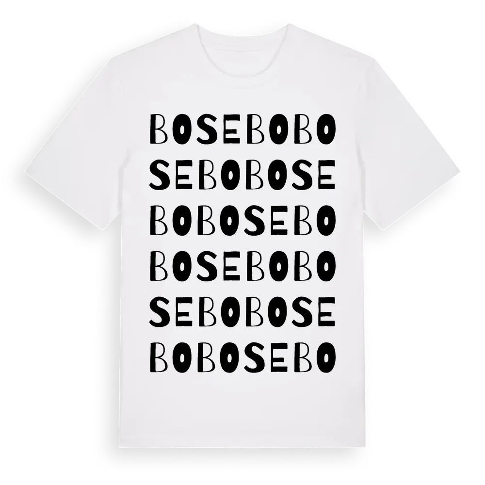 Bosebo ordlek t-shirt är inspirerad av Bosebo i Hallands län, Sverige. Tröjan är designad för dig som har en speciell koppling till platsen – oavsett om du bor här, har rötterna här eller bara älskar Bosebo.