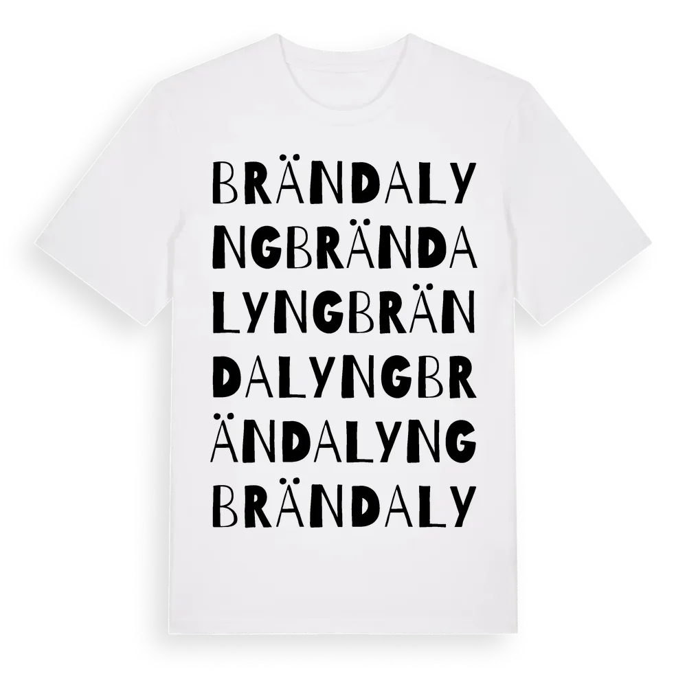 Brända Lyng ordlek t-shirt är inspirerad av Brända Lyng i Hallands län, Sverige. Tröjan är designad för dig som har en speciell koppling till platsen – oavsett om du bor här, har rötterna här eller bara älskar Brända Lyng.