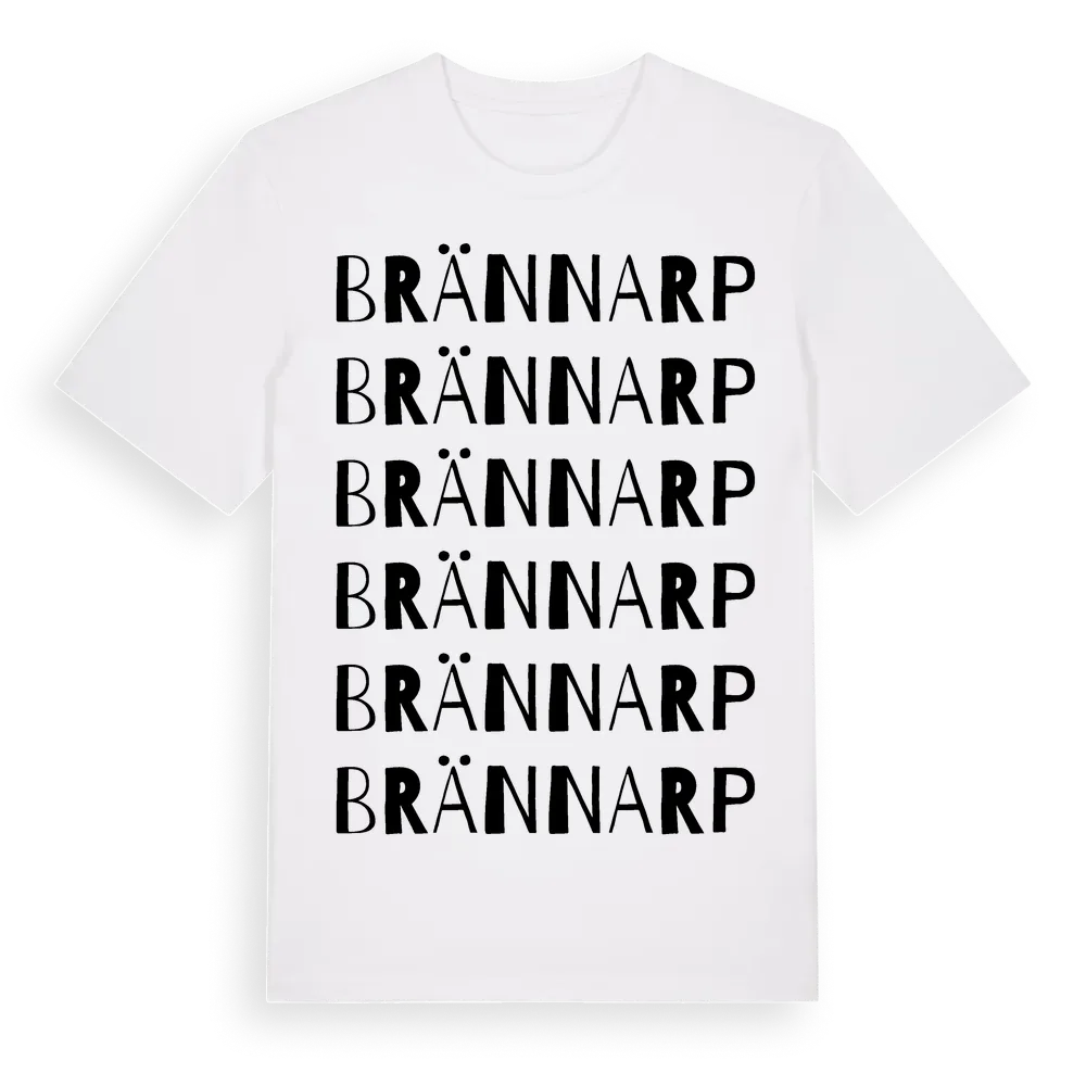 Brännarp ordlek t-shirt är inspirerad av byn Brännarp i Hallands län, Sverige. Tröjan är designad för dig som har en speciell koppling till platsen – oavsett om du bor här, har rötterna här eller bara älskar Brännarp.