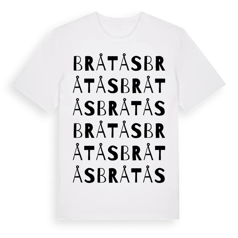 Bråtås ordlek t-shirt är inspirerad av Bråtås i Hallands län, Sverige. Tröjan är designad för dig som har en speciell koppling till platsen – oavsett om du bor här, har rötterna här eller bara älskar Bråtås.