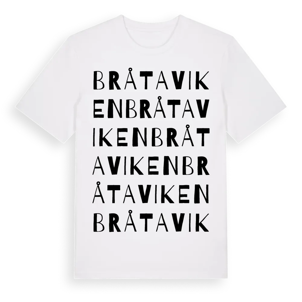 Bråtaviken ordlek t-shirt är inspirerad av Bråtaviken i Hallands län, Sverige. Tröjan är designad för dig som har en speciell koppling till platsen – oavsett om du bor här, har rötterna här eller bara älskar Bråtaviken.