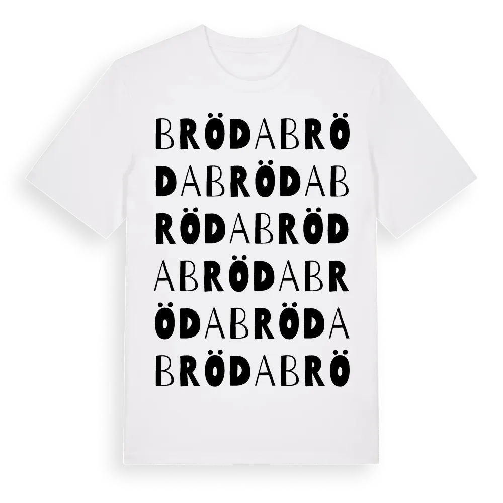 Bröda ordlek t-shirt är inspirerad av byn Bröda i Hallands län, Sverige. Tröjan är designad för dig som har en speciell koppling till platsen – oavsett om du bor här, har rötterna här eller bara älskar Bröda.