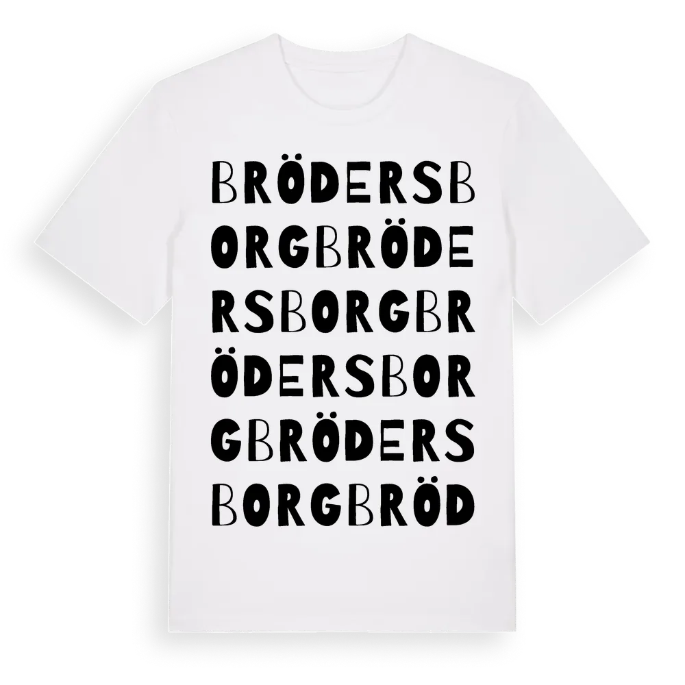 Brödersborg ordlek t-shirt är inspirerad av Brödersborg i Hallands län, Sverige. Tröjan är designad för dig som har en speciell koppling till platsen – oavsett om du bor här, har rötterna här eller bara älskar Brödersborg.