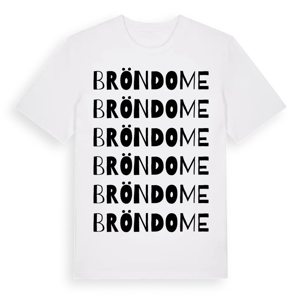 En ordlek byggd på Bröndomes namn. Subtilt och klurig – ett motiv som bara de som verkligen känner platsen fullt ut förstår. Premium bomull, unisex – från byn Bröndome i Hallands län.