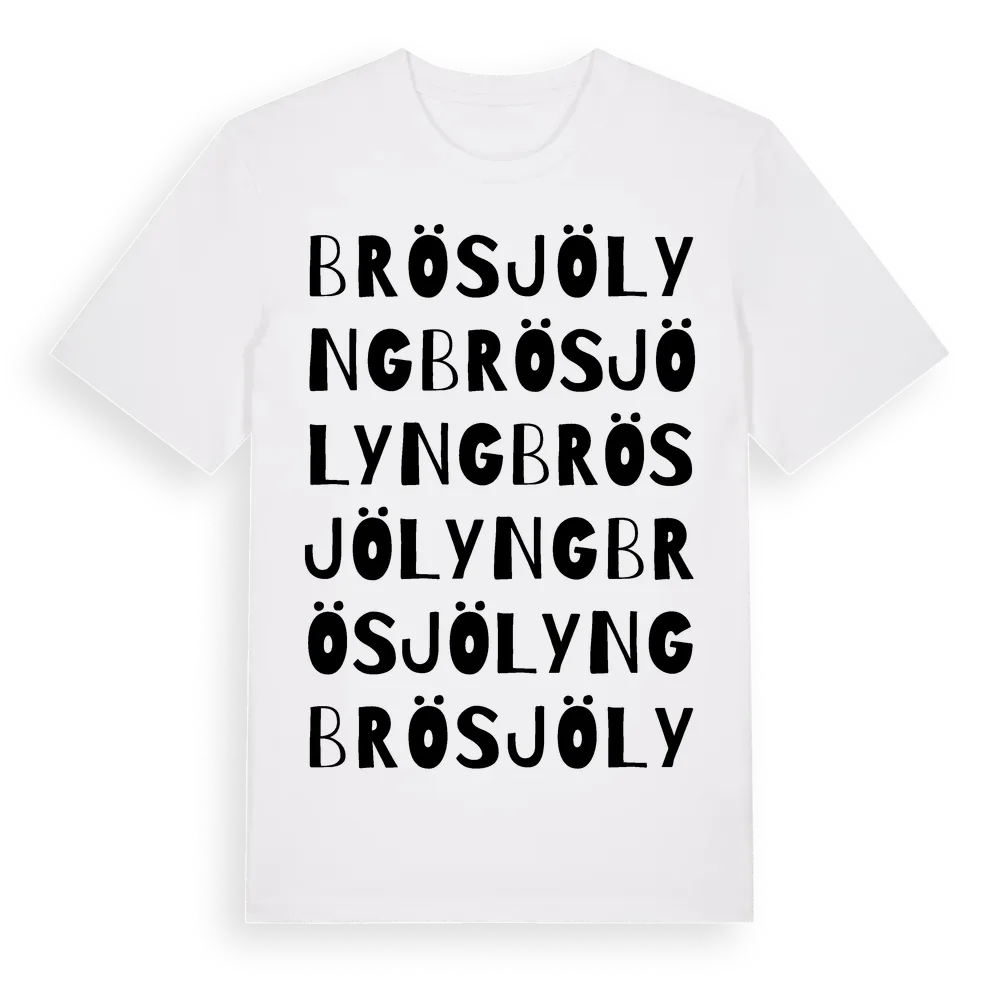Brösjölyng ordlek t-shirt är inspirerad av Brösjölyng i Hallands län, Sverige. Tröjan är designad för dig som har en speciell koppling till platsen – oavsett om du bor här, har rötterna här eller bara älskar Brösjölyng.