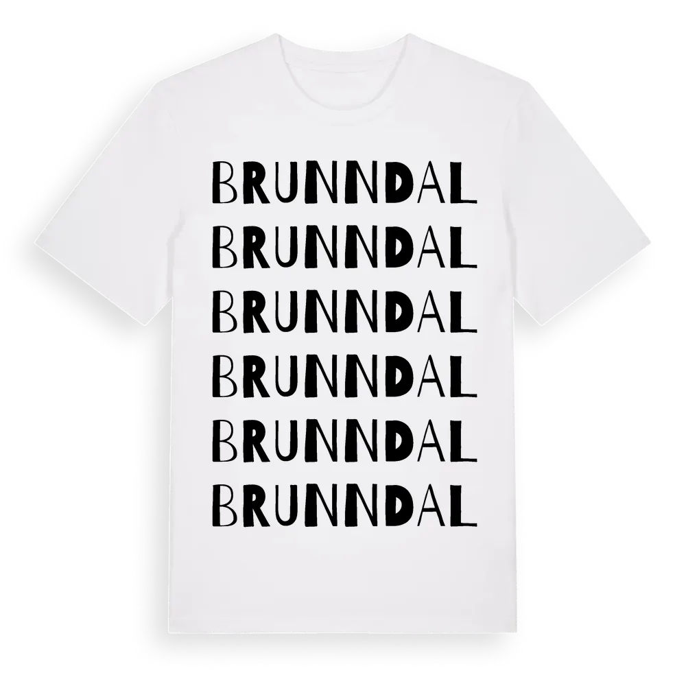 Brunndal ordlek t-shirt är inspirerad av Brunndal i Hallands län, Sverige. Tröjan är designad för dig som har en speciell koppling till platsen – oavsett om du bor här, har rötterna här eller bara älskar Brunndal.