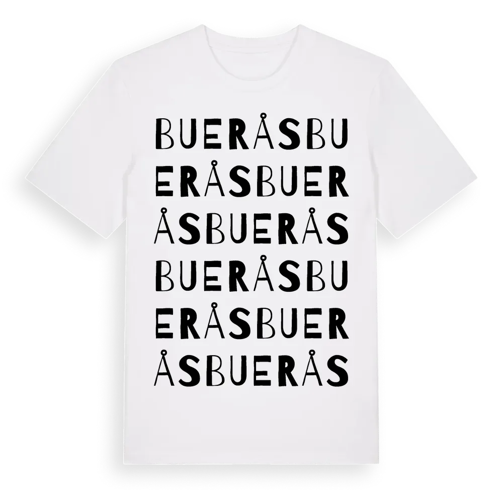 Buerås ordlek t-shirt är inspirerad av Buerås i Hallands län, Sverige. Tröjan är designad för dig som har en speciell koppling till platsen – oavsett om du bor här, har rötterna här eller bara älskar Buerås.